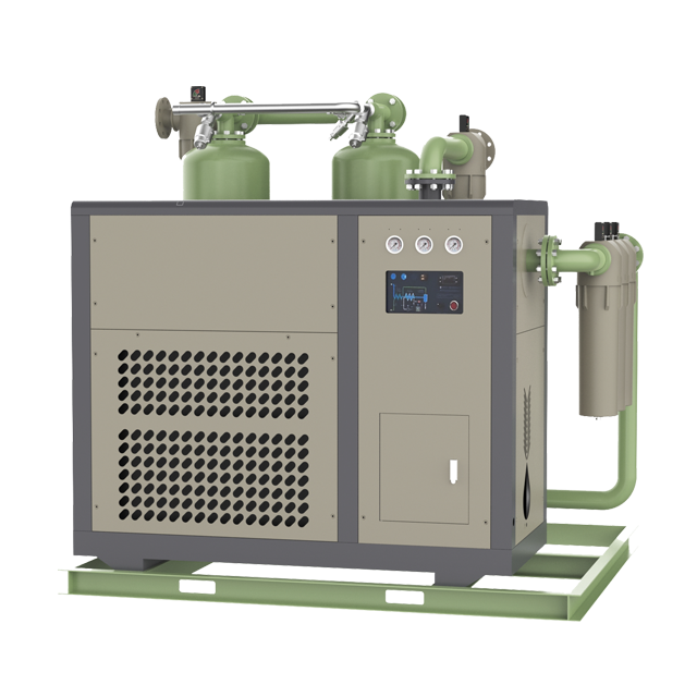 Our combined air dryer model seamlessly integrates the refrigerated air dryer, precision filtration system, and adsorption air dryer into one compact skid mounted unit, delivering multiple functions in a single solution. Simply connect the air inlet to the air buffer tank and the outlet to your gas generator for an immediate supply of clean, dry compressed air-no complex installation or commissioning required. This space-saving, all-in-one design enhances efficiency and convenience, providing a streamlined and reliable solution for your compressed air purification needs.